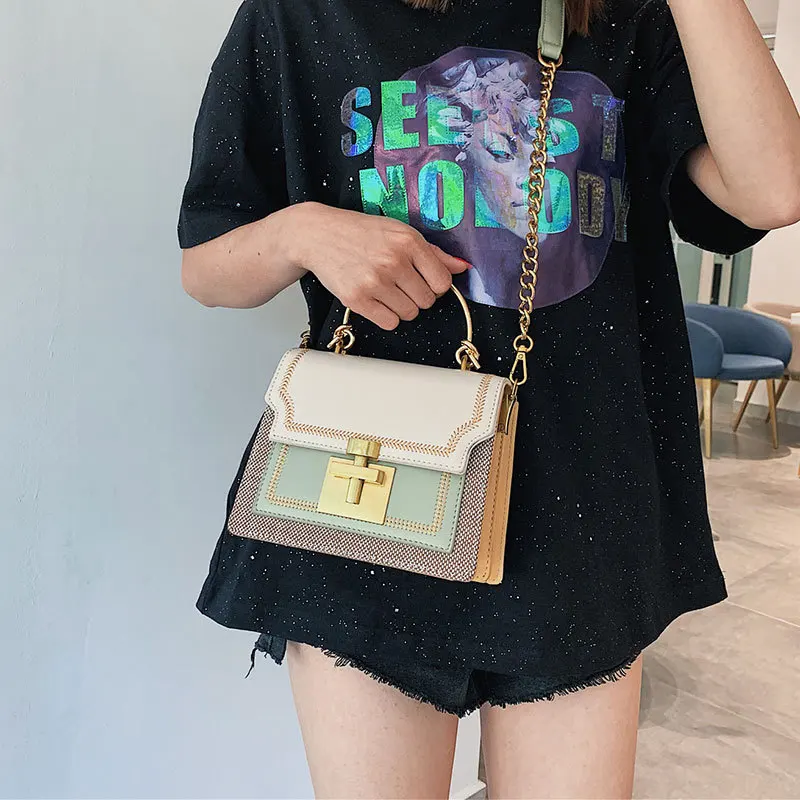 Good Product 2020 New Fashion Pathwork PU Leather Women Crossbody Bags Vintage Shoulder Messenger Bag Ladies Clu