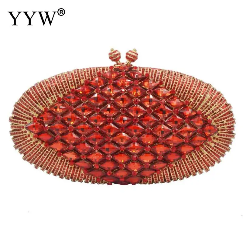 Big Deal Red Metal Women Wedding Purse Handbag Clutch Bag 2020 New Rhinestone Argyle Oval Diamond Evening Pa