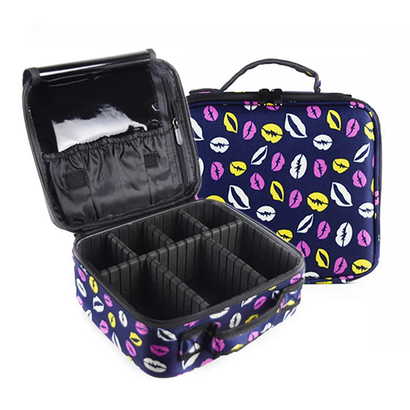 Discount Makeup Cosmetic Bag Lips Black Printed Organizer Bags Pouch with Clapboard Toiletry Beauty Case Fem